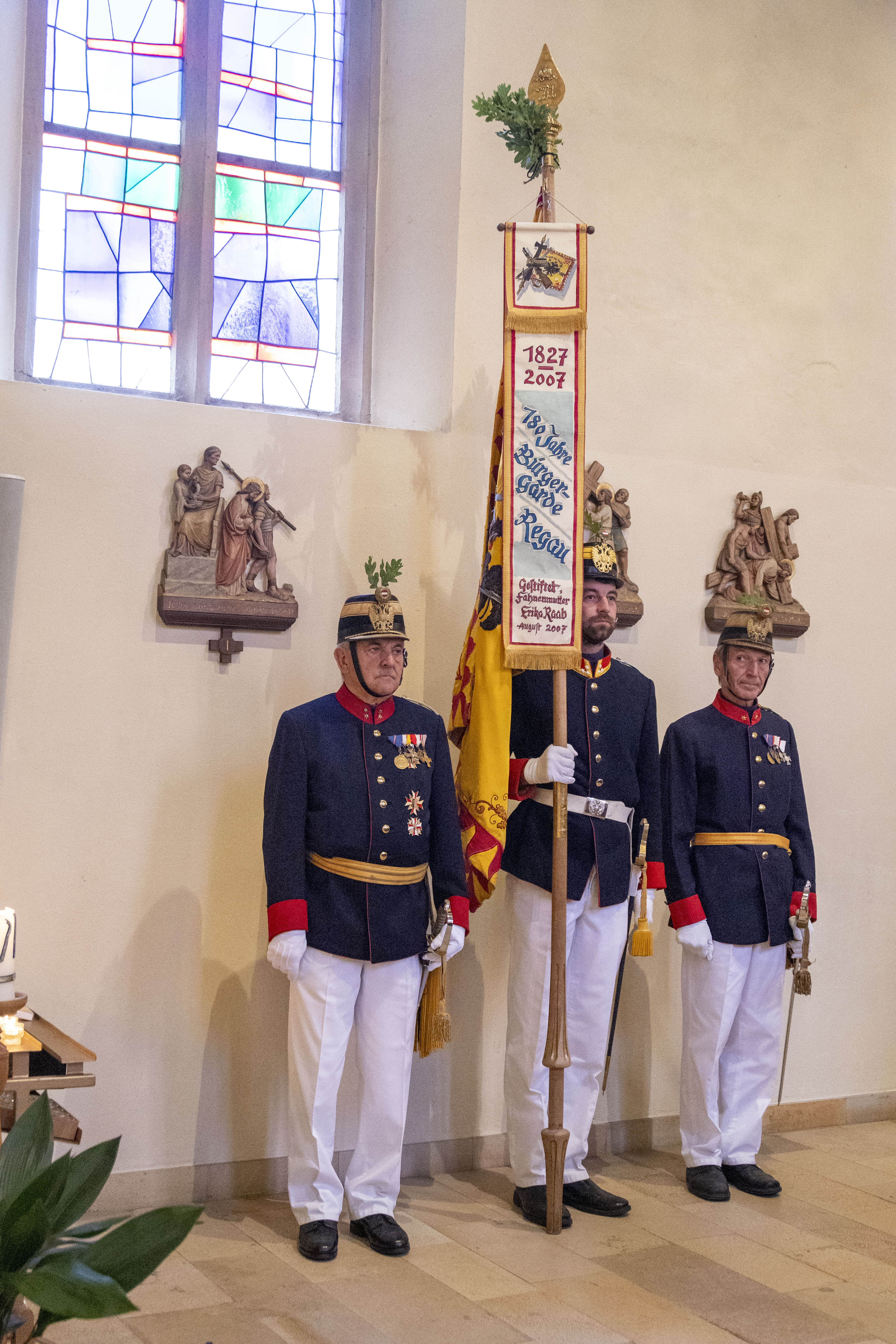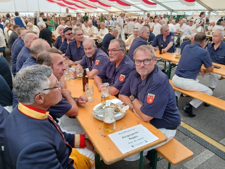 Ein Landesgardefest, das diesen Namen verdient, richtete die Bürgergarde Mattighofen anlässlich ihres 400-jährigen Jubiläums am 13. Juli 2025 aus. Oder — genauer gesagt — holte die Bürgergarde Mattighofen dieses Fest, das 2020 wegen der Corona-Pandemie hatte abgesagt werden musste, nunmehr nach. Wie viele andere Bürgergarden, Schützen- und Traditionsvereine nahm selbstverständlich auch die Bürgergarde Regau mit 40 Ausrückenden gemeinsam mit der Bürgerkorpskapelle daran teil. Überschattet wurde das Fest traurigerweise vom plötzlichen Ableben unseres verdienten Hauptmanns Helmut Enser, der in der vorangegangenen Nacht verstorben war.