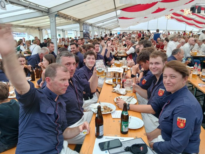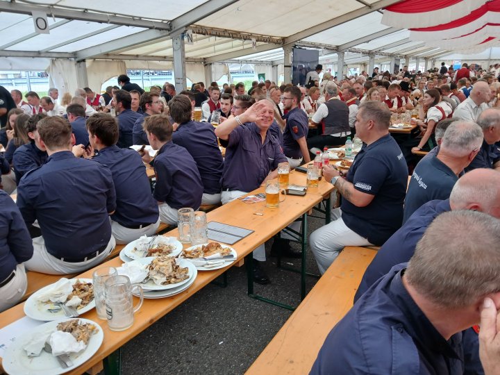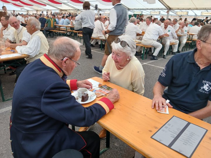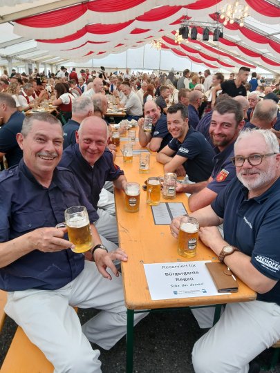 Nach dem Festakt traf man sich im Festzelt zum gemütlichen Ausklang bei Speis und Trank. Für die musikalische Unterhaltung sorgte die Siebenbürger Blasmusik aus Munderfing. Zu einem wahrlich gelungenes Jubiläumsfest darf man der Bürgergarde Mattighofen herzlich gratulieren.