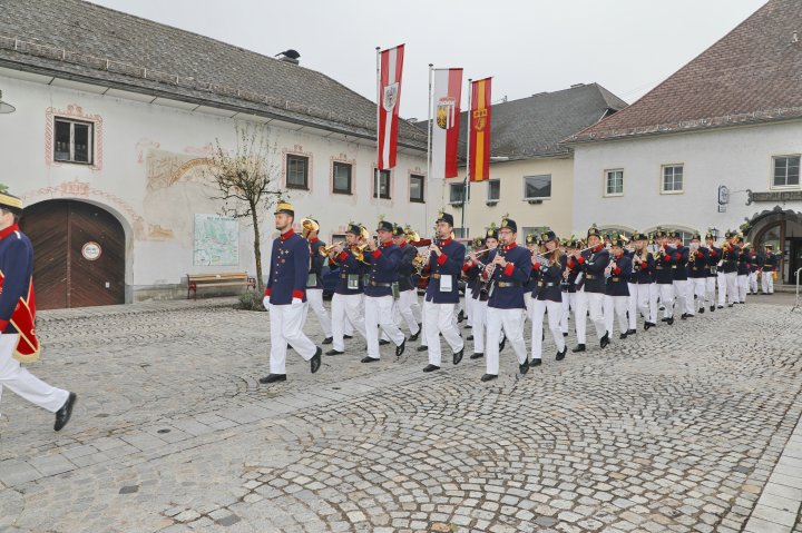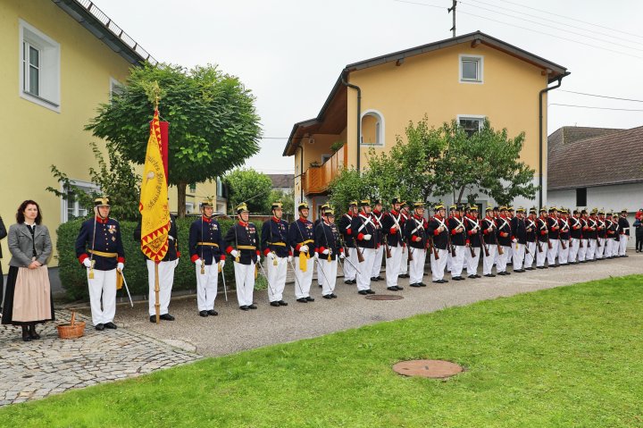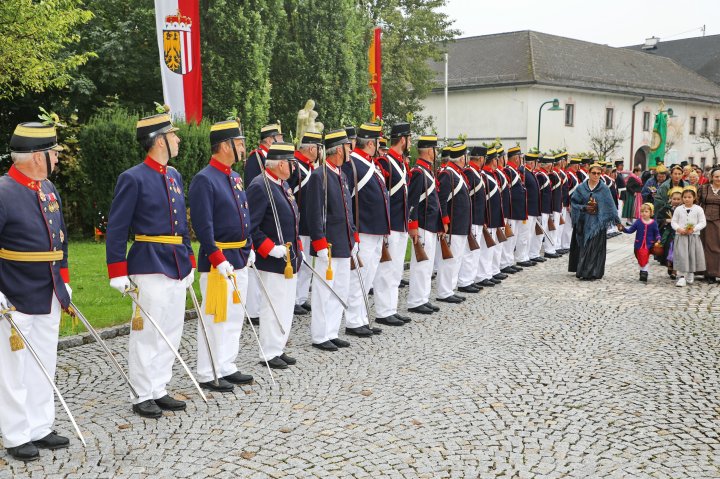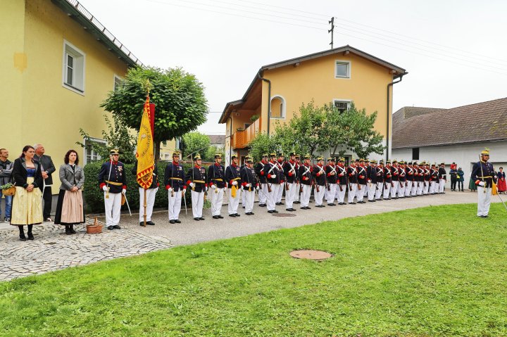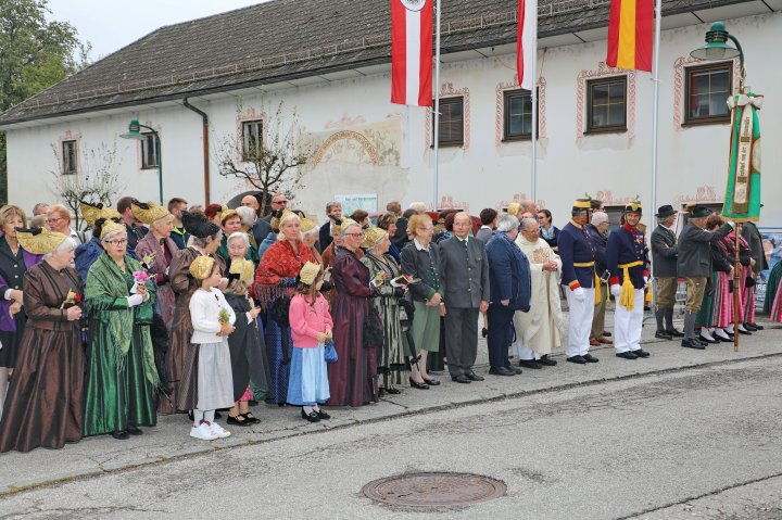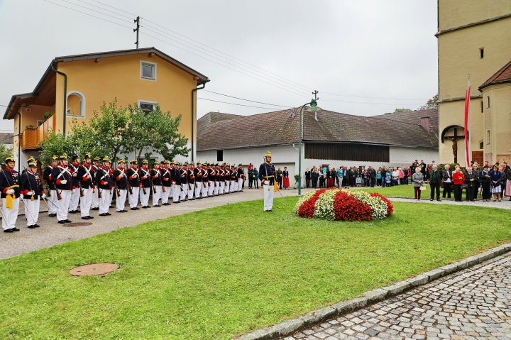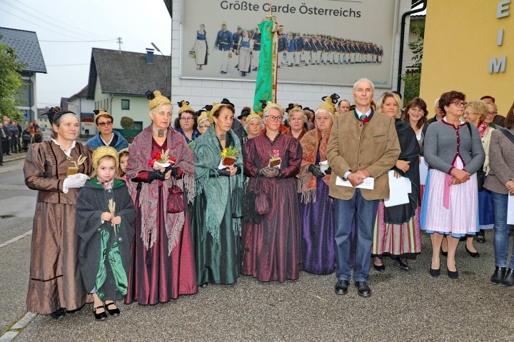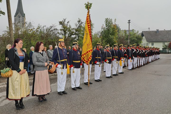 Am 25. September feierte die Pfarre Regau das jährliche Erntedankfest. Das Fest begann vor dem Pfarrheim, von wo aus die Erntekrone zum Gottesdienst in die Pfarrkirche geleitet wurde. Nach der Messe nahmen die Bürgergarde und die Bürgerkorpskapelle für das Kriegergedenken Aufstellung. Die verstorbenen Kameraden wurden mit einem Salutschuss geehrt. Der Kommandant leistete Ihnen zudem die gebotene Ehrenbezeugung. Schließlich wurde zur Melodie des Rainermarsches defiliert und zum Pfarrheim ausmarschiert, wo eine Verköstigung durch die Pfarre stattfand.