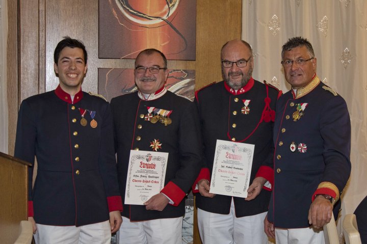 Per Tagesbefehl zum Gefreiten befördert wurde Gard. Franz Schindlauer, zum Korporal Gfr. Martin Hochmayr und Gfr. Josef Pichler und zum Zugsführer Kpl. Siegfried Niederfriniger. Für seine 50-jährige Vereinsmitgliedschaft erhielt indessen Zgf. Leopold Altmanninger das Gardedienstzeichen in Gold. Mit der Verdienstmedaille in Silber ausgezeichnet wurden Fhr. Franz Humer und Zgf. Anton Schwarz, mit der Verdienstmedaille in Gold Zgf. Alfred Riezinger. Das Verdienstkreuz in Bronze wurde an Zgf. Johann Hohl und Zgf. Rudolf Huemer, das Verdienstkreuz in Silber an Zgf. Fritz Mairhofer und Zgf. Thomas Seiringer verliehen. StFw. Franz Haslinger und Zgf. Rudolf Neubacher wurde das Ehrenzeichen in Bronze verliehen. Mit der höchsten Auszeichnung des Landesverbandes, dem Stern zum Kommandantenkreuz, wurde für sein langjähriges Wirken in der Bürgergarde Hptm. Helmut Enser geehrt.