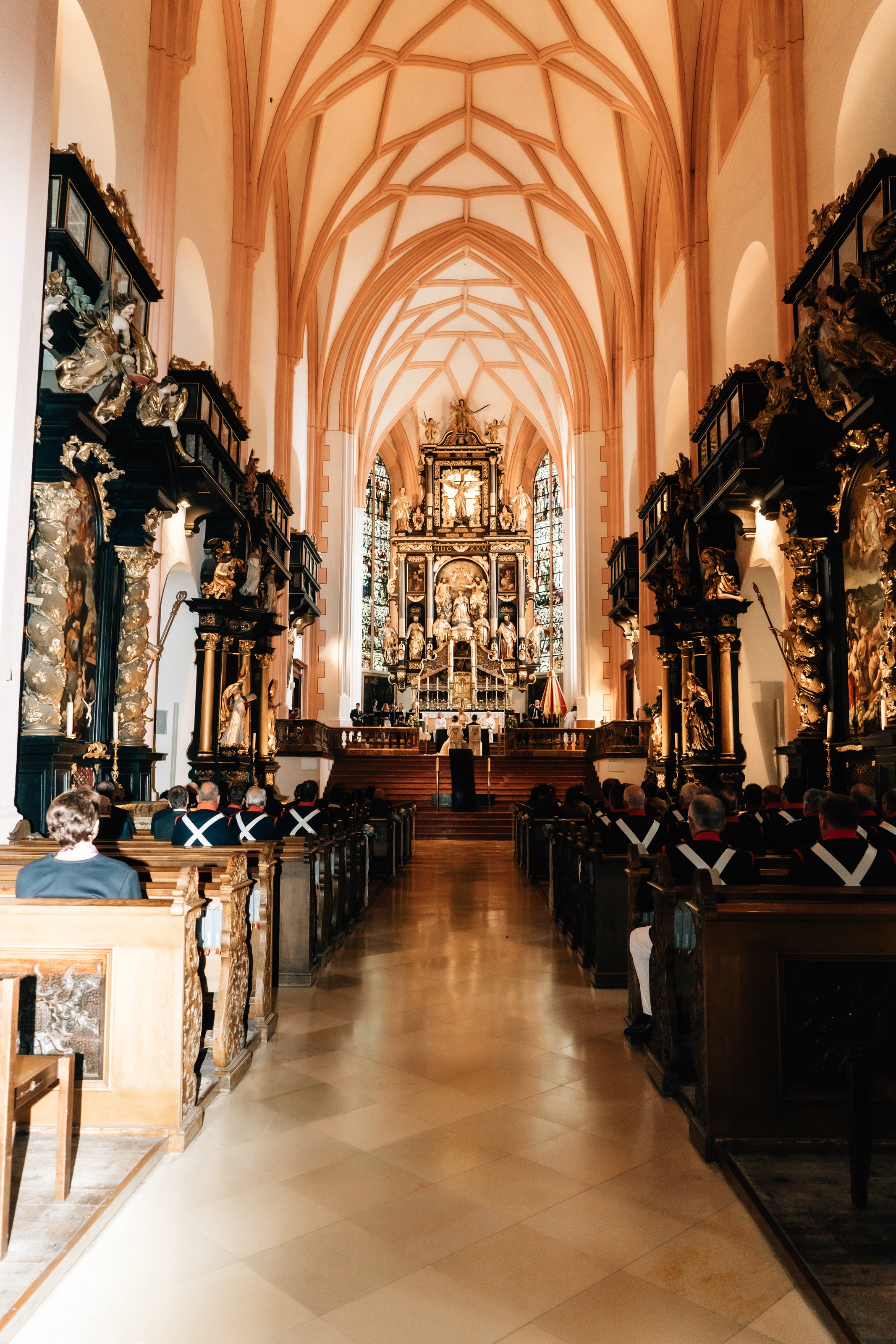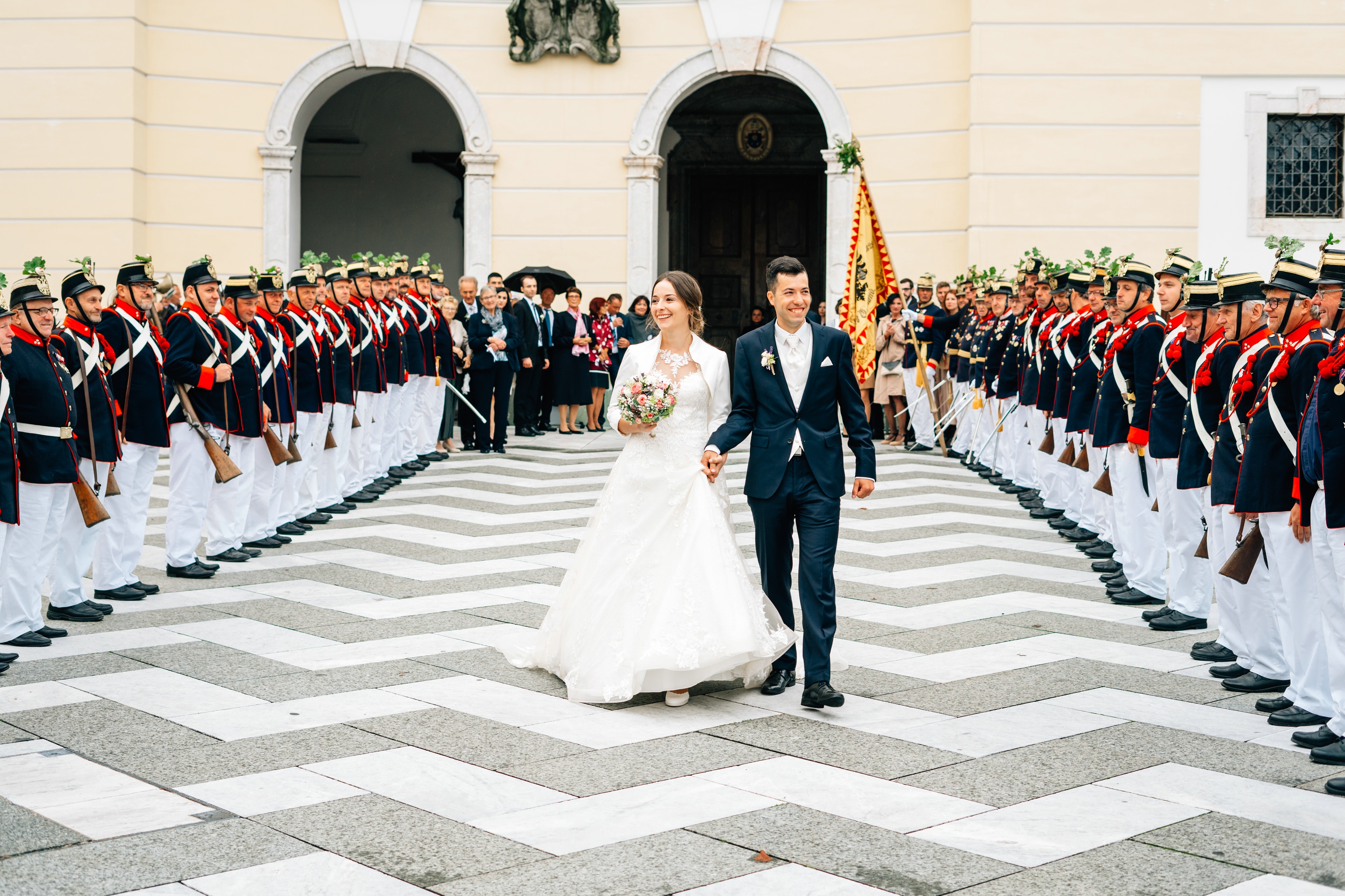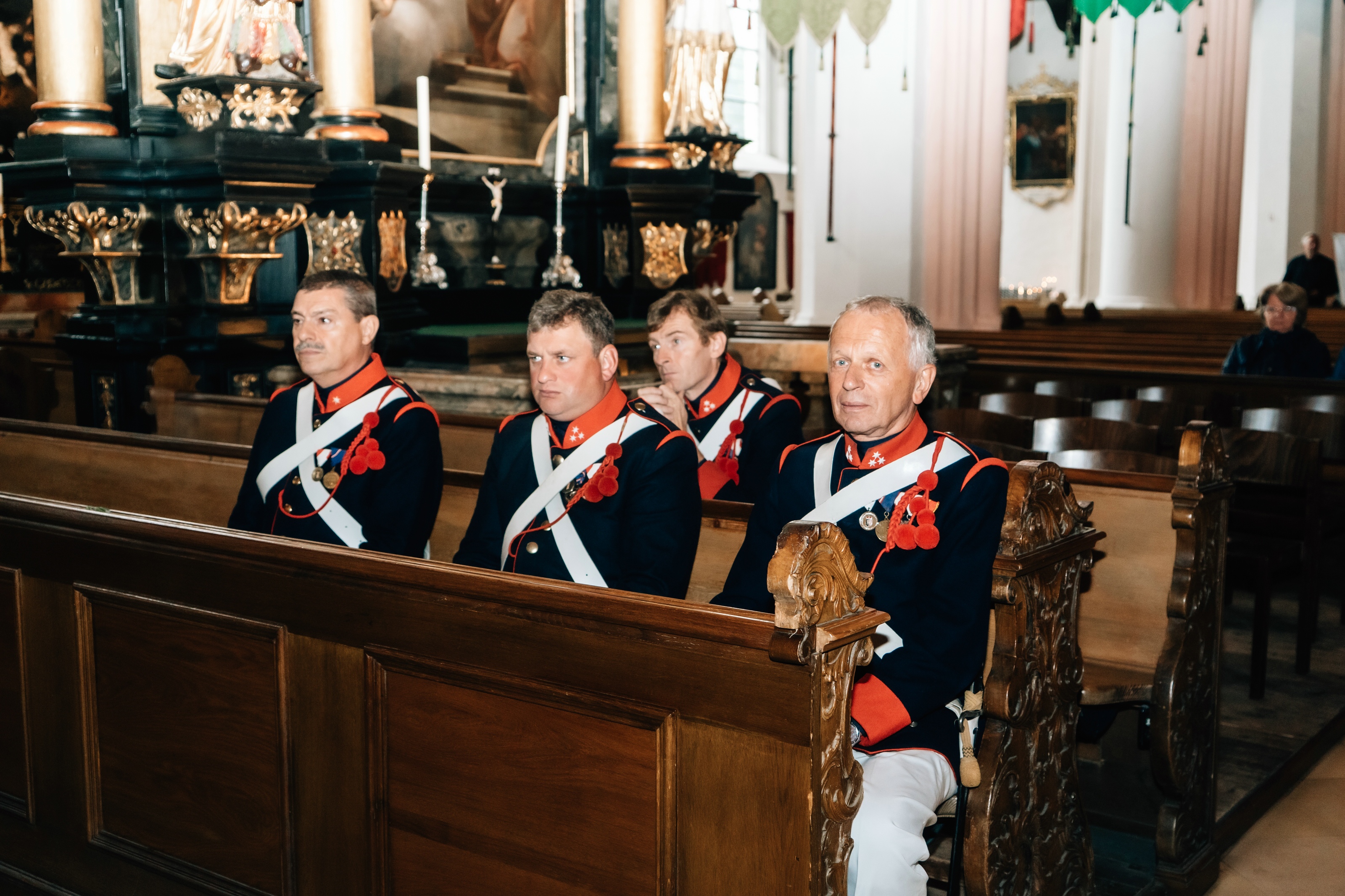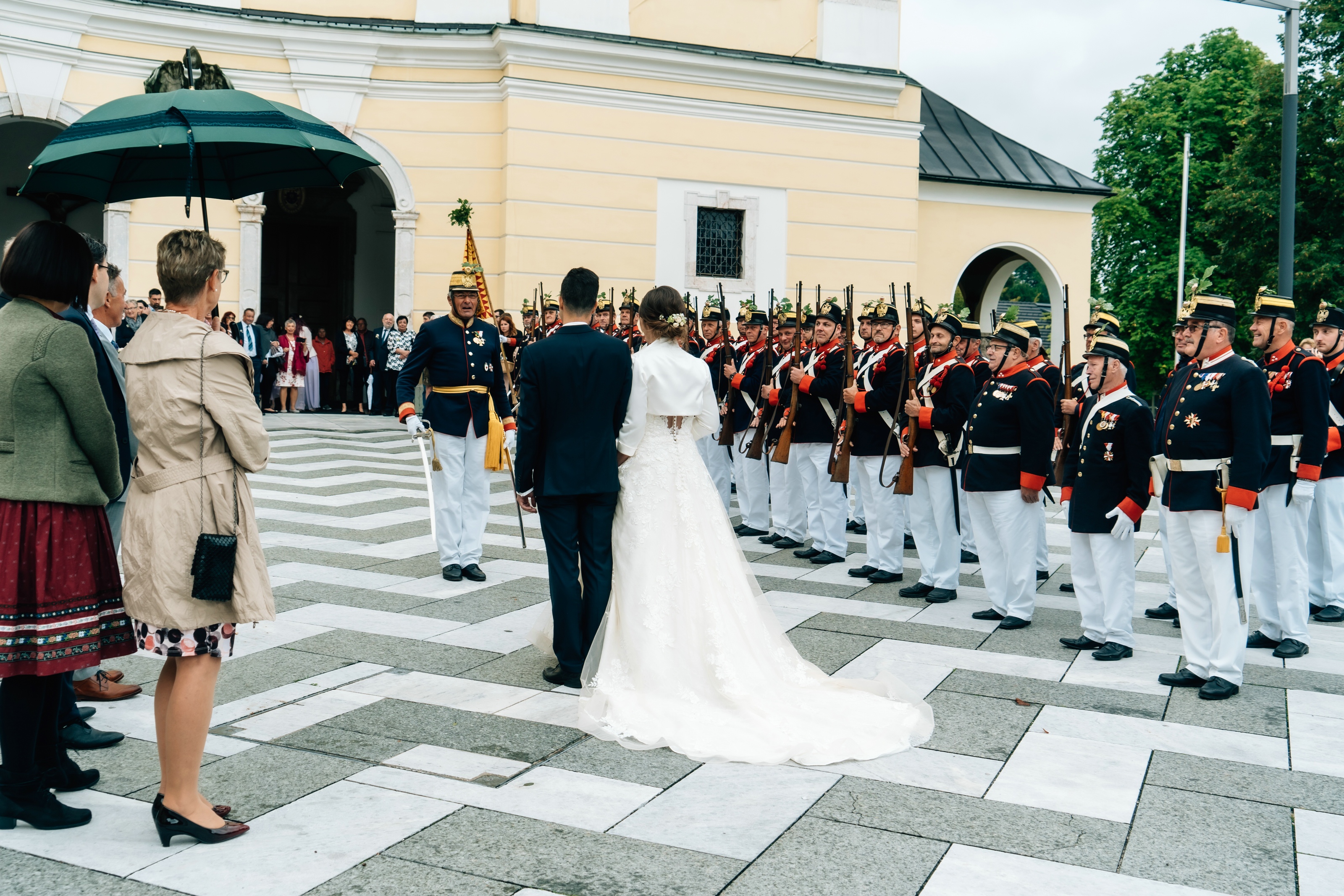 Obmann Mario Niederfriniger und seine Verlobte Charlotte Unterweger feierten am 7. September in der Basilika Mondsee ihre kirchliche Vermählung. Auch eine stark vertretene Bürgergarde folgte der Einladung und reiste zur Hochzeit an. Nach dem Einmarsch auf dem großen Kirchenvorplatz folgte der Einzug in die Kirche und ein stimmungsvoller Gottesdienst, wo sich die beiden Brautleute das Ja-Wort gaben. Beim Auszug stand die Bürgergarde dann unter den Augen zahlreicher Zaungäste Spalier. Nach der Meldung ließ sie das Brautpaar mit einer Ehrensalve hoch leben. Kommandant Hubert Niederfriniger, die Obmann-Stv. Herbert Schwarz und Josef Achleitner sowie Marketenderin Helene Enser gratulierten dem Brautpaar herzlich und stießen mit ihnen auf einen guten weiteren Lebensweg an. Im Anschluss waren alle Hochzeitsgäste zum Hochzeitsmahl im Gasthaus zum Fidelen Bauern in Oberwang eingeladen.