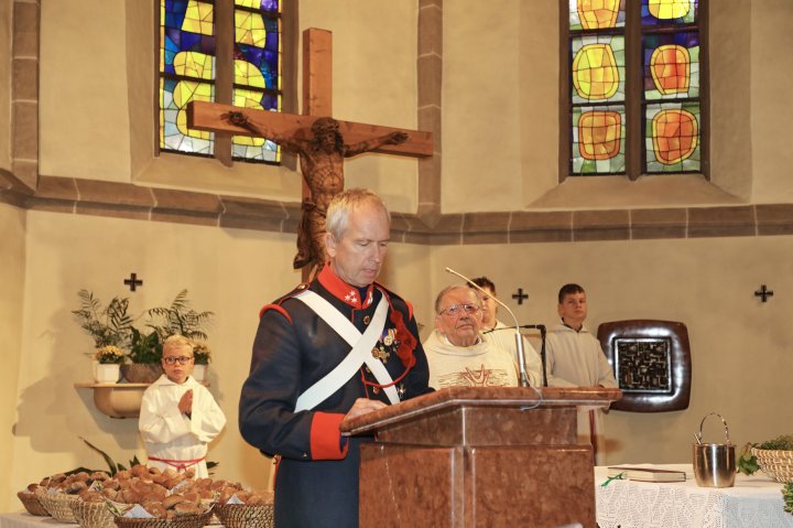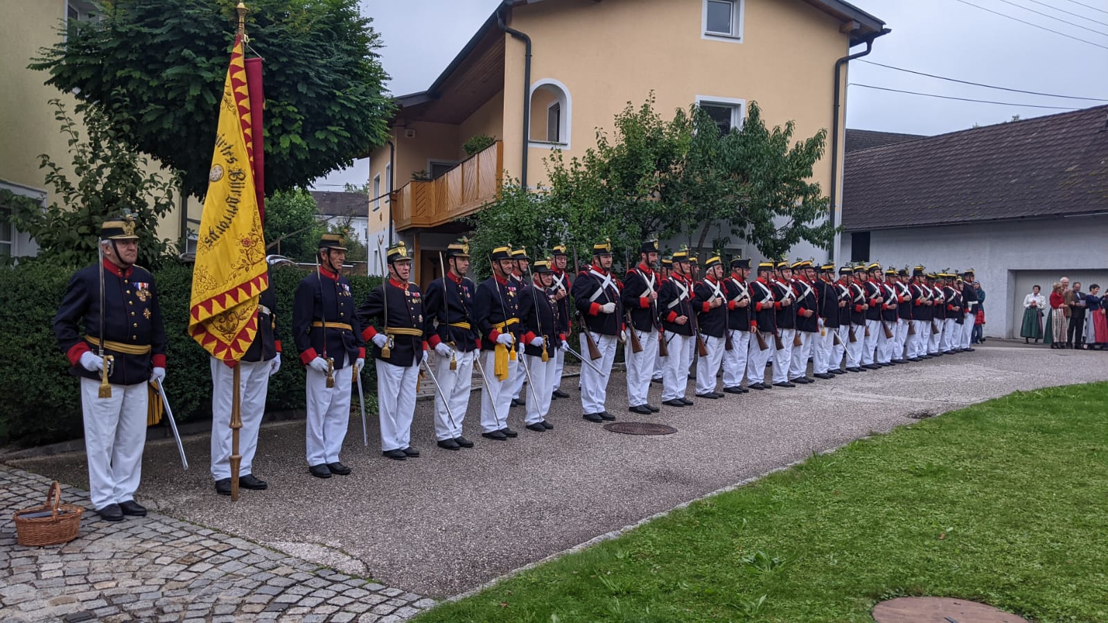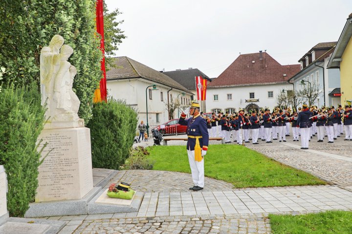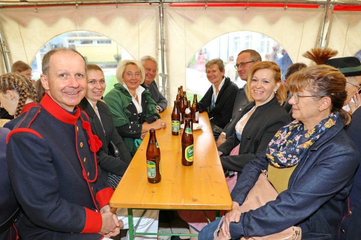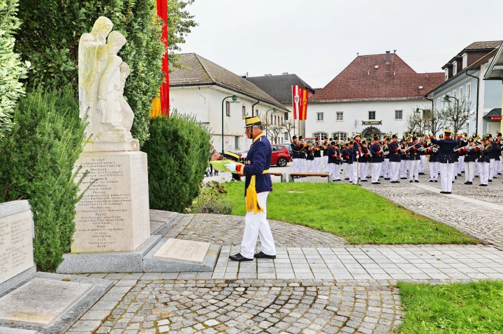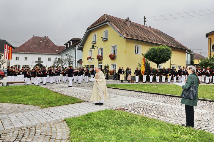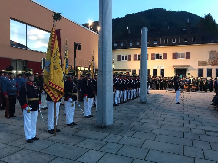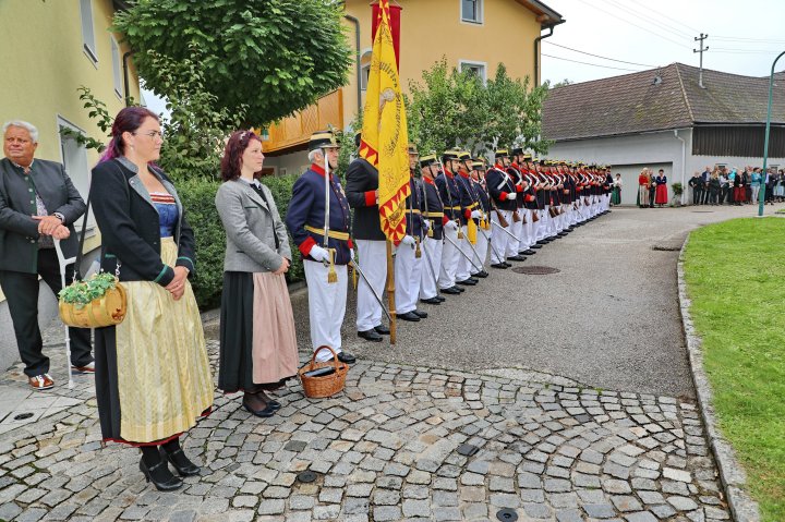 Am 4. September rückte eine 14-köpfige Abordnung der Bürgergarde Regau anlässlich der jährlichen Schlossbergmesse nach Friedburg aus. Zunächst war der 15 Minuten lange, steile Einmarsch zum Schlossberg zu bewältigen. Oben angekommen tat sich ein wahrer Kraftplatz auf. Begonnen wurde mit einer Feldmesse, wo die Bürgergarde Regau einen Salut zur Wandlung abfeuerte. Im Festakt eingebunden war die Segnung und Überreichung eines Fahnenbandes der neuen Fahnenpatin. Weiters folgte ein Lauffeuer der Schützen von Treubach und Vöcklamarkt. Der Höhepunkt war die Überreichung der höchsten Auszeichnung des Landesverbandes, des Sterns zum Kommandantenkreuz, an Mjr. Alois Stampfl durch den Landeskommandanten Mjr. Hubert Niederfriniger. Nach einem Marsch durch Friedburg zum Festzelt genossen die Beteiligten dann den gemütlichen und kameradschaftlichen Teil der Ausrückung, bevor die Abordnung direkt zur Regauer Dorf Roas zum Informationsstand der Bürgergarde Regau fuhr.